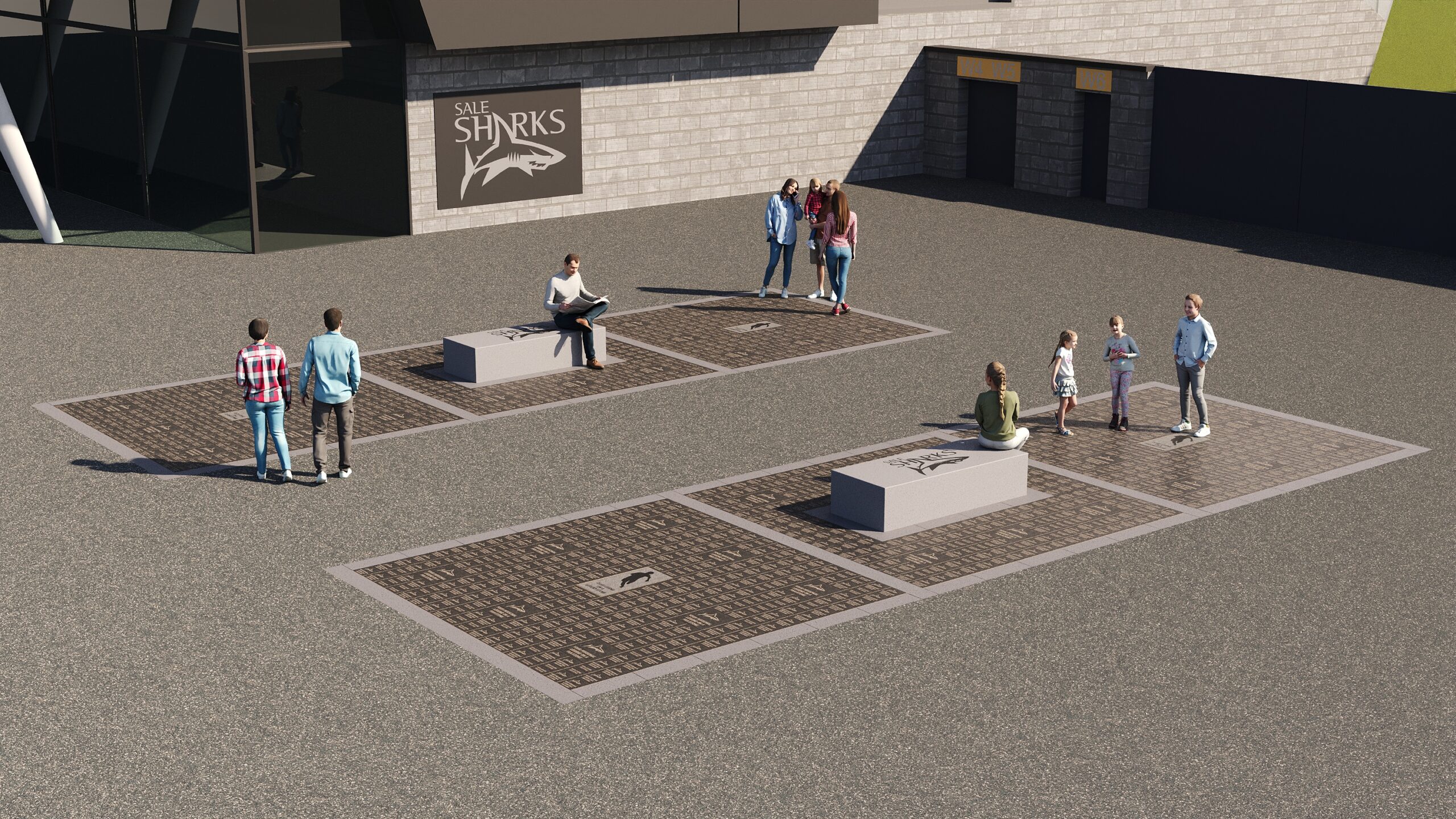 As shown here in computer renderings, we’re aiming to develop an area outside the south turnstiles with 6 large areas of fan stones, centred around 2 seats.